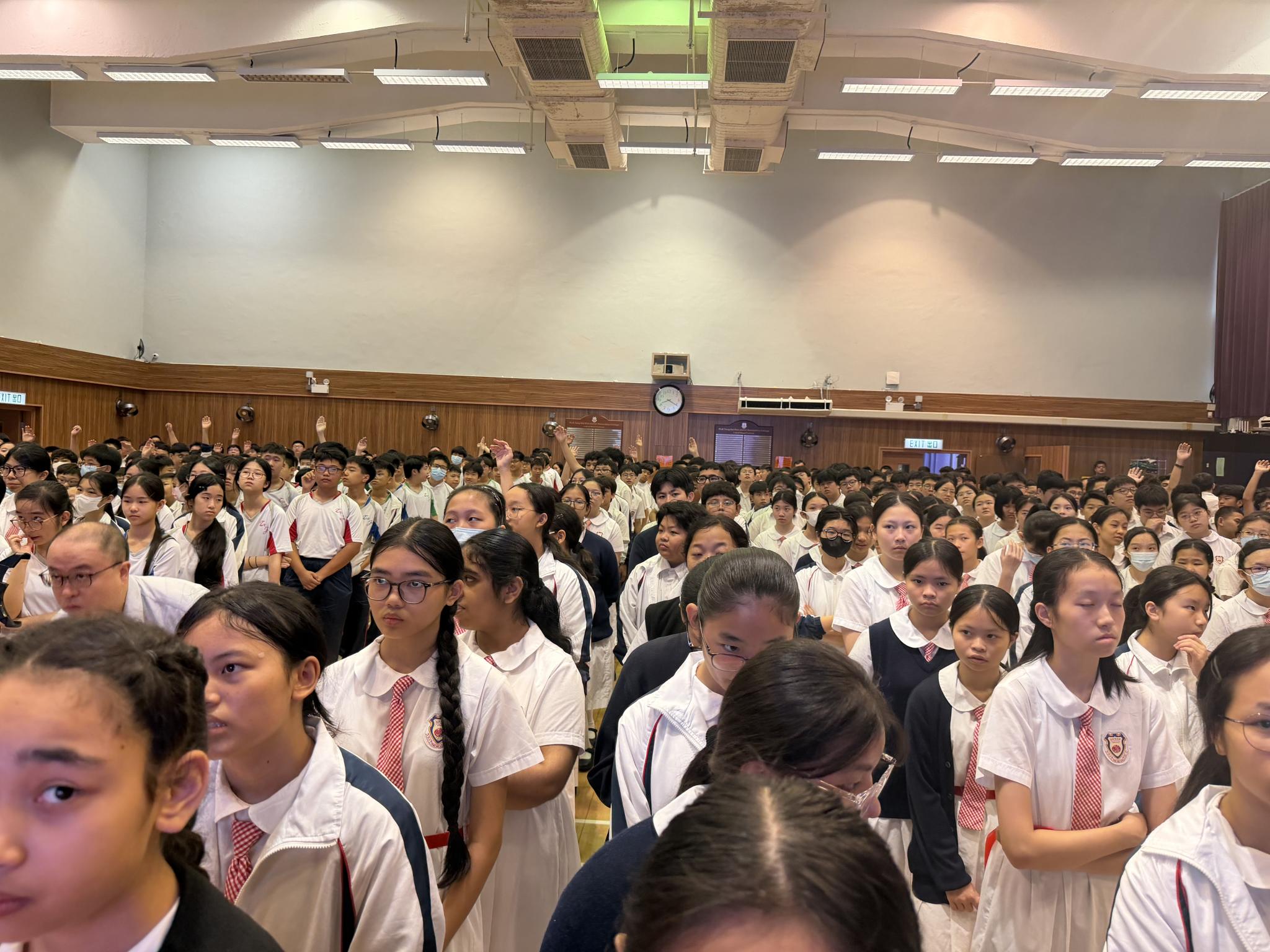 Two student MC are asking students questions.