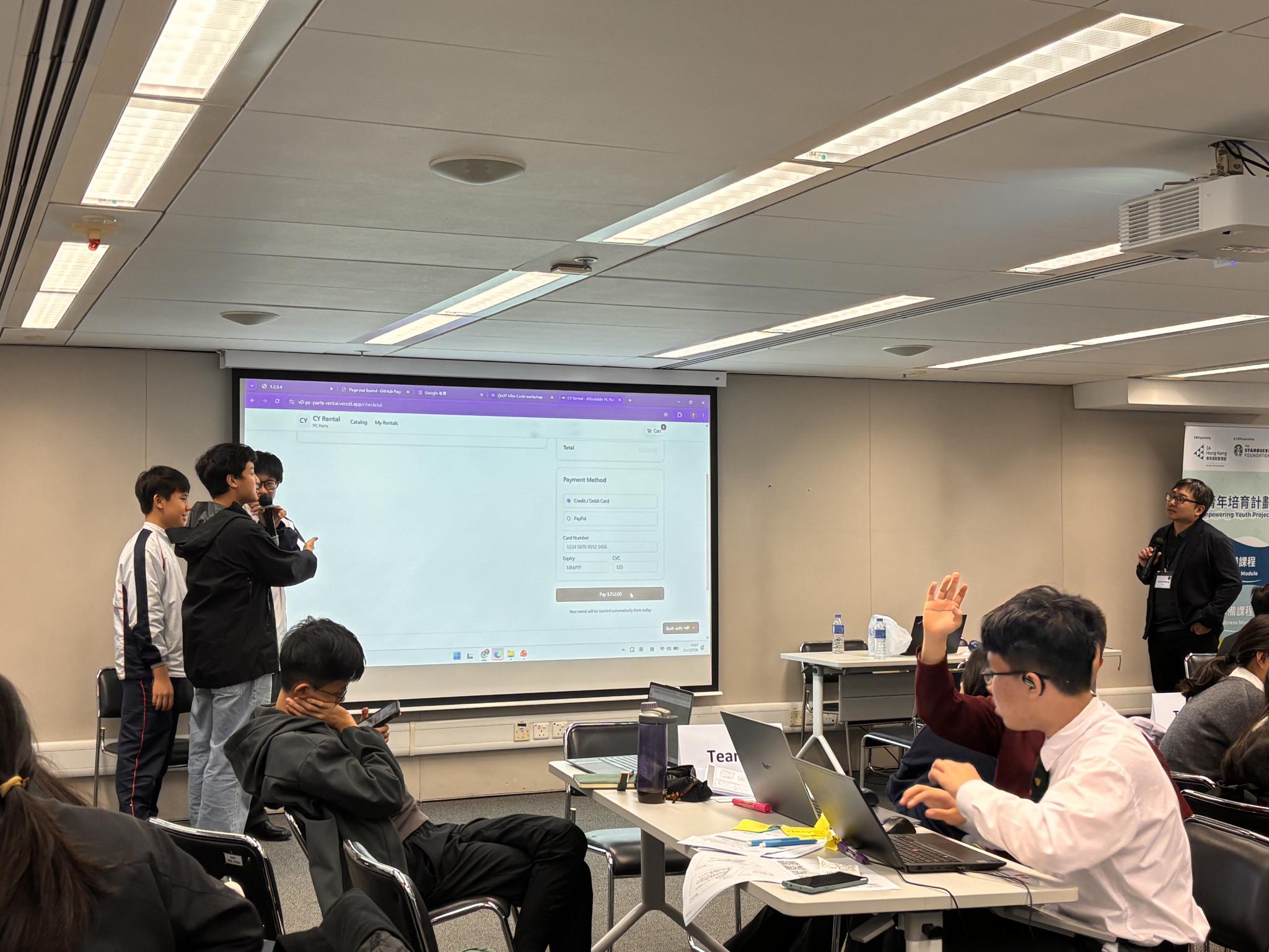 To help students create app prototypes that can help the local community, our students joined the JA Innovation Camp, a hands-on workshop on 31 January 2026, organized by the Junior Achievement Hong Kong (JAHK). They engaged in a 3-hour design thinking session led by business volunteers and a 3-hour coding training with professional trainers to tackle exercises, prototype solutions, and present ideas addressing community issues. This immersive experience fostered creativity, entrepreneurial mindset, teamwork, and problem-solving skills among students. Overall, the workshop helped students prepare for the JA Code for Impact Challenge Competition.