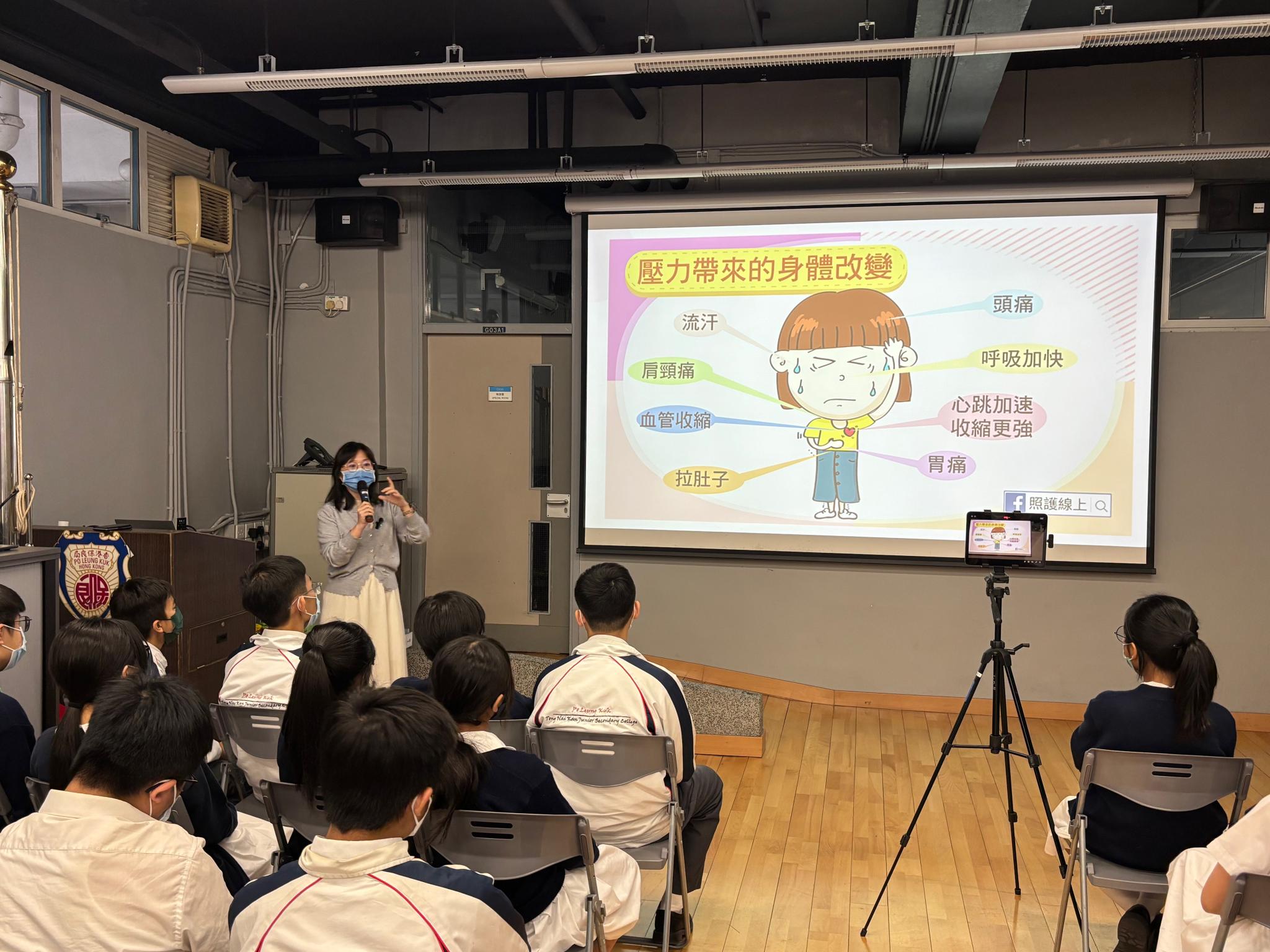 To promote a healthy lifestyle and prevent internet addiction, the Discipline and Guidance Committee, in collaboration with the Moral, Civic and National Education Committee, invited the Po Leung Kuk's "Healthy Teens Program" to conduct a "Prevention of Addiction Workshop" for Form 2 students on November 14th. The activities included self-assessment of internet addiction risk, exploring underlying reasons, and discussing coping strategies. Students actively participated and gained significant benefits from the workshop.